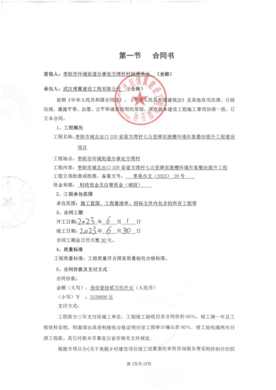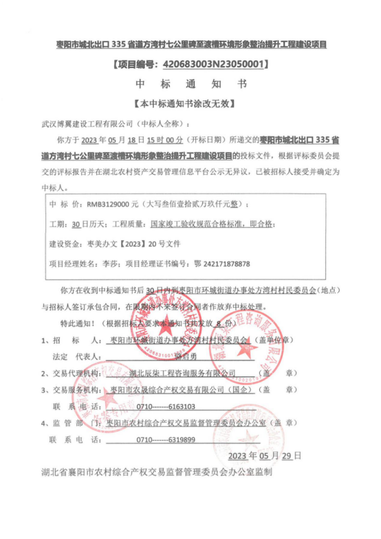 枣阳市城北出口335省道方湾村七公里碑至渡槽环境形象整治提升工程建设项目
