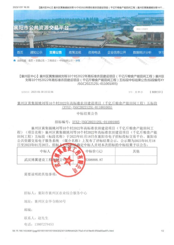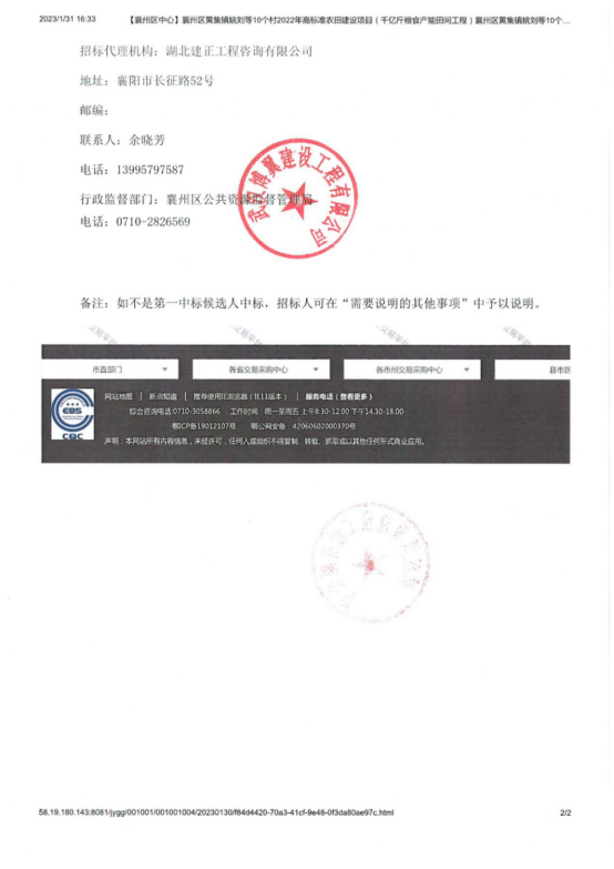 襄州区黄集镇姚刘等10个村2022年高标准农田建设项目(千亿斤粮食产能田间工程)五标段