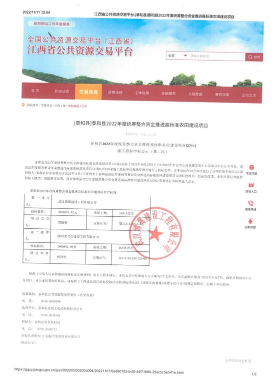 泰和县2022年度统筹整合资金推进高标准农田建设项目27标段