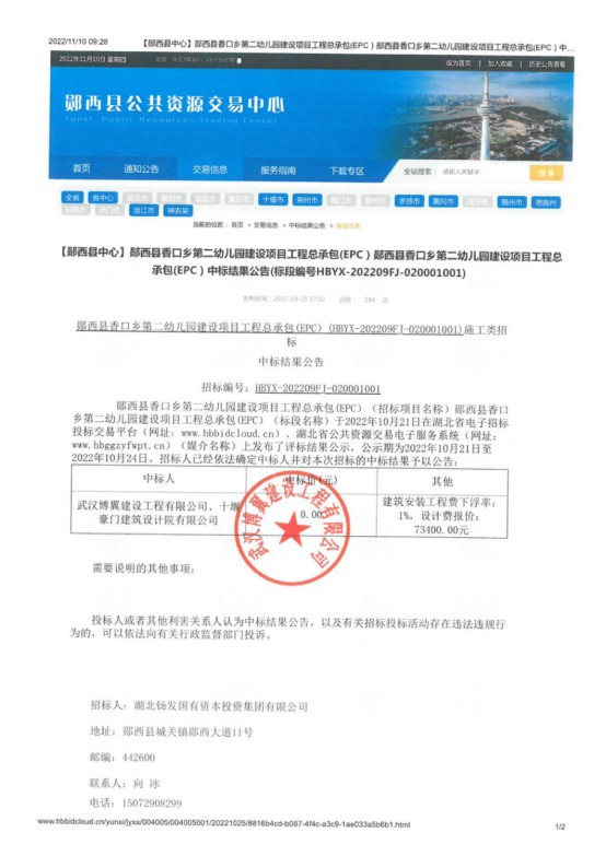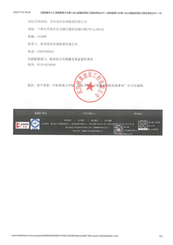 郧西县香口乡第二幼儿园建设项目工程总承包(EPC)
