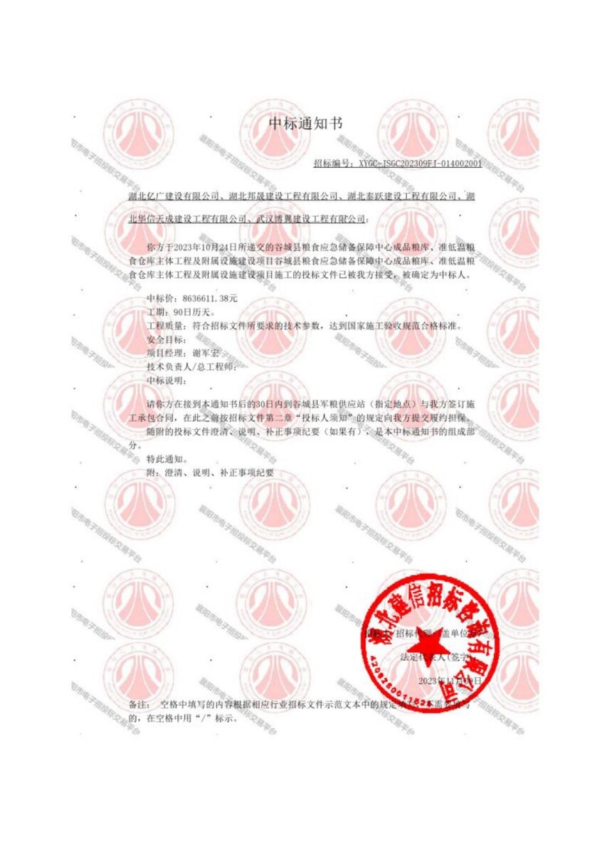 首页 >> 工程项目 >>中标项目 >> 谷城县粮食应急储备保障中心成品粮库、准低温粮食仓库主体工程及附属设施建设项目