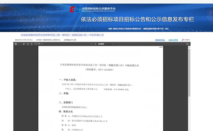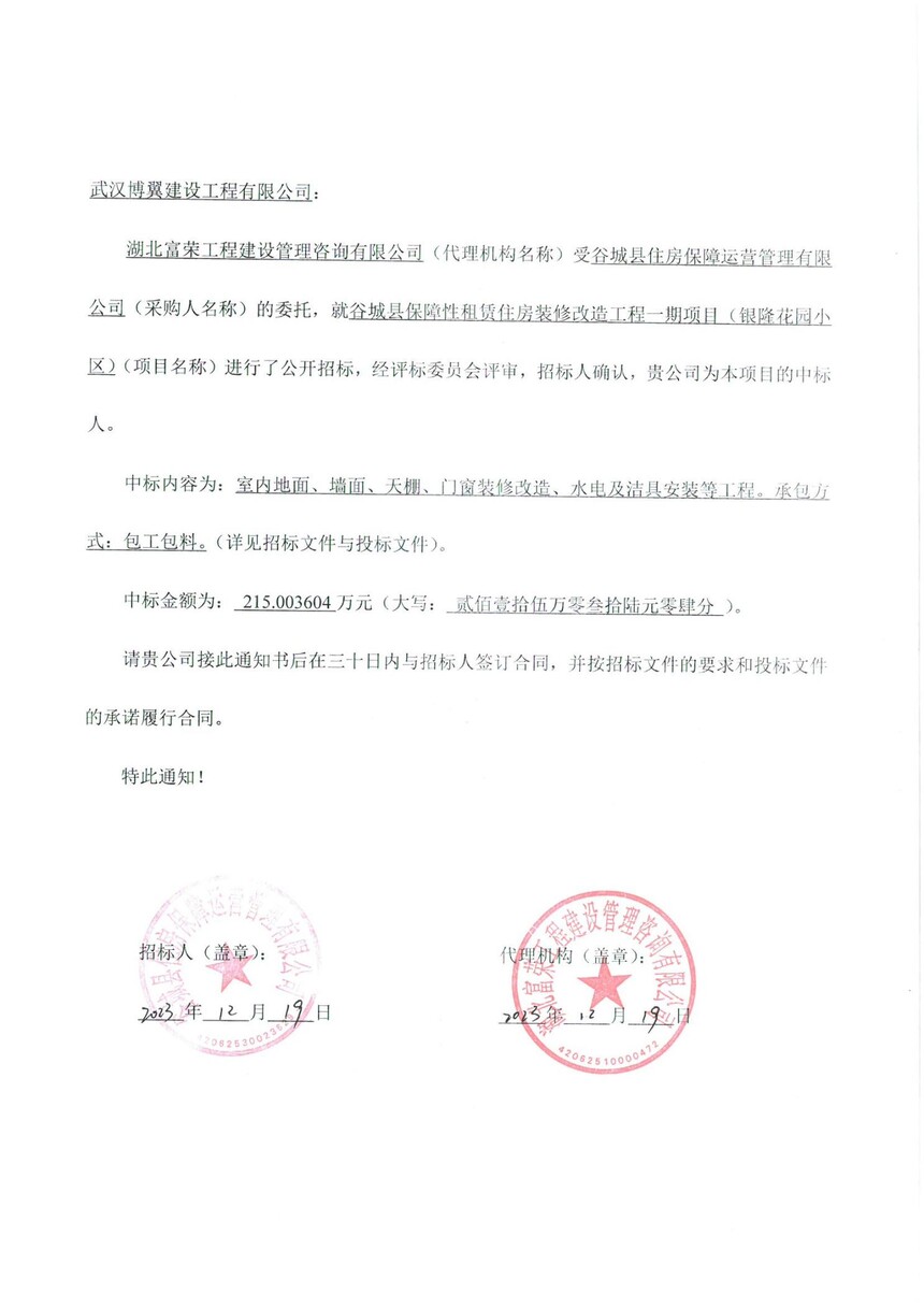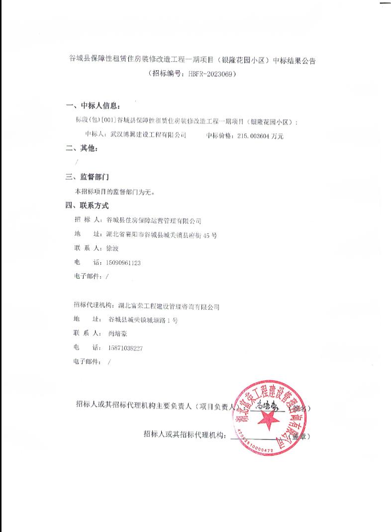 谷城县保障性租赁住房装修改造工程一期项目(银隆花园小区)