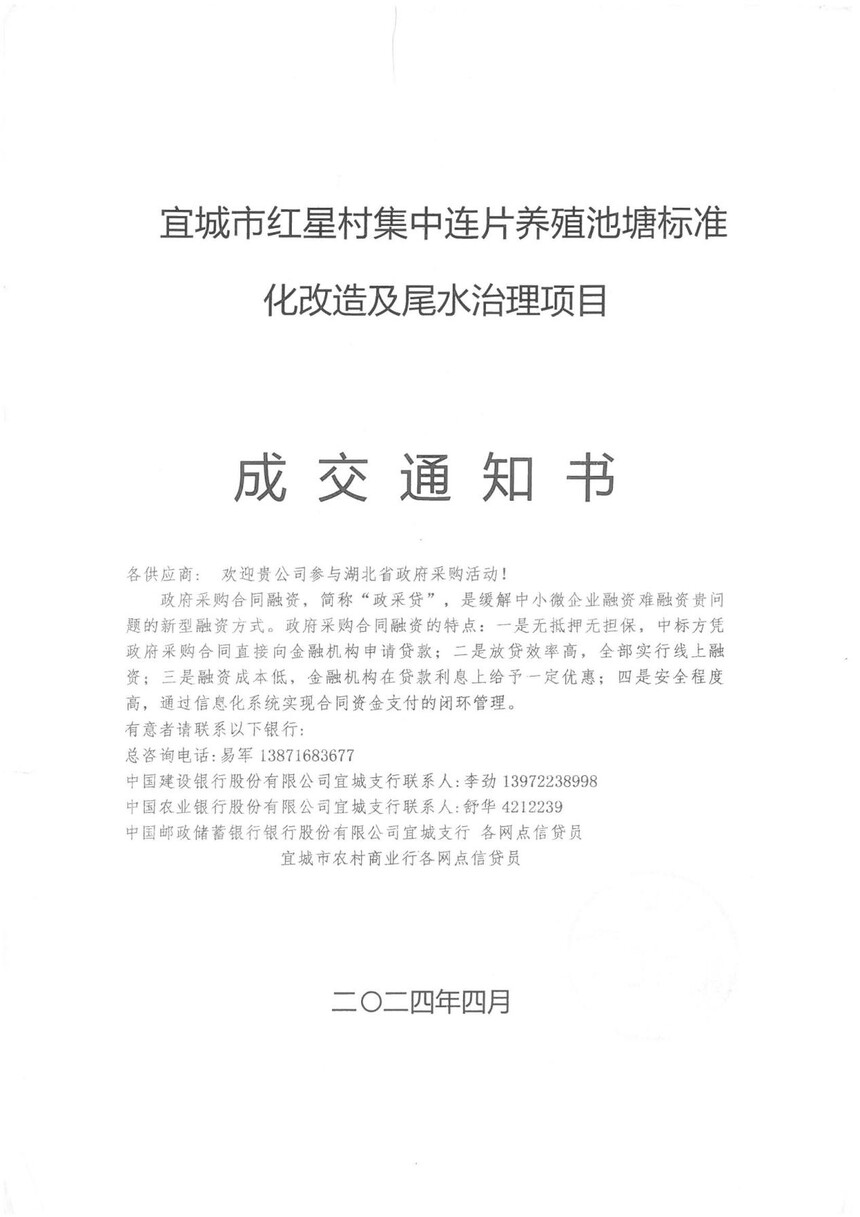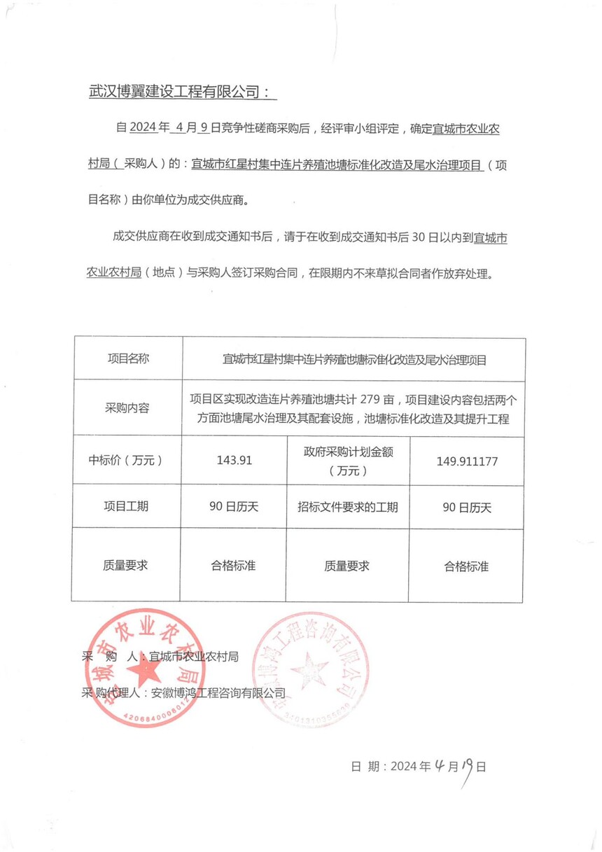 宜城市红星村集中连片养殖池塘标准化改造及尾水治理项目