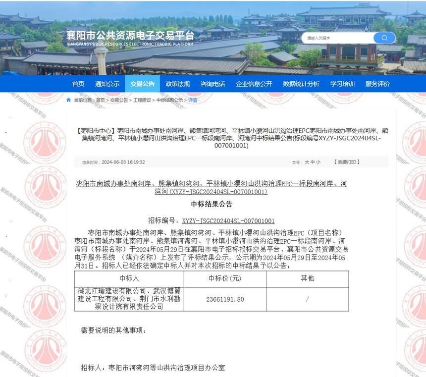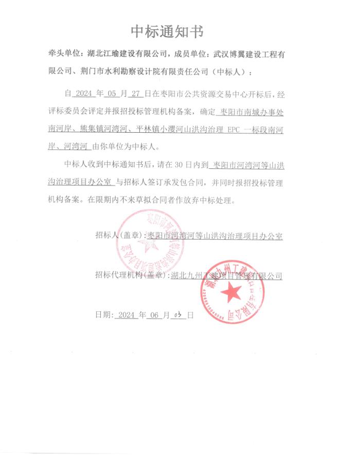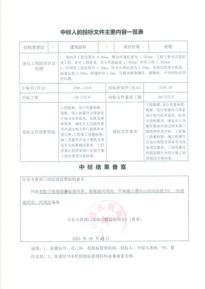 枣阳市南城办事处南河岸、熊集镇河湾河、平林镇小瀴河山洪沟治理 EPC 一标段南河岸、河湾河